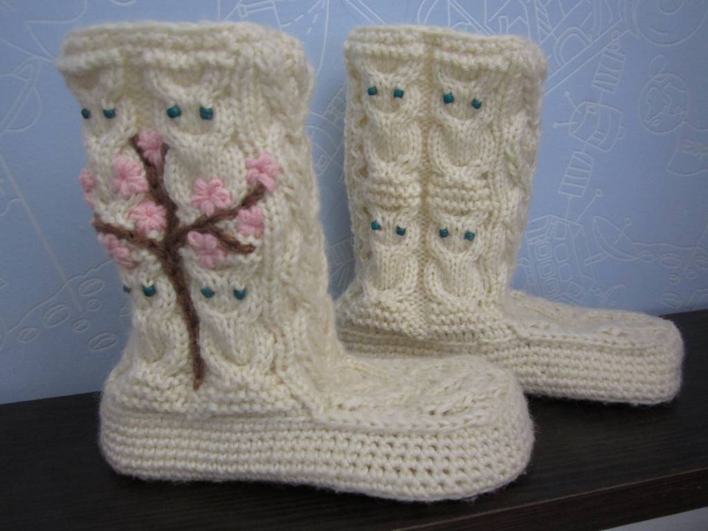 Носки с совами в виде тапочек. Крючком обвязала стельки и первые 6 рядов. Завтра будут забирать. Надеюсь, что понравится