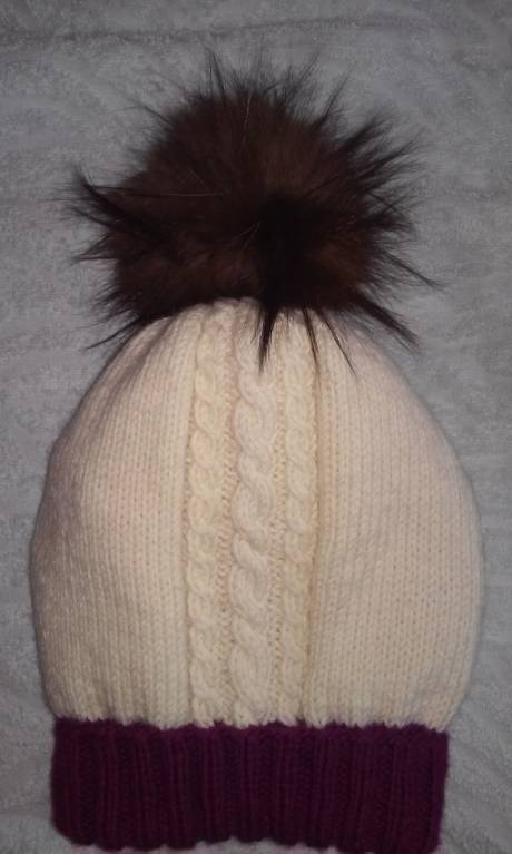 Шапуля для младшей. Как думаете меховой помпон или из ниток бело фиооетовый сделать. Что-то мне кажется меховые помпушки уже порядком надоели.