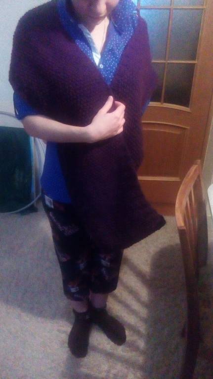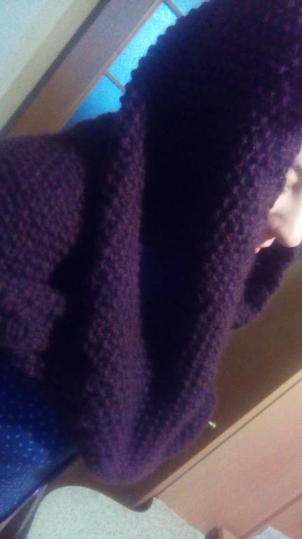 С заказчицей встретилась на нейтральной территории. Ей понравился вариант - труба. Сейчас перевязываю, чтобы к лицу было сужено, нечто среднее между капором и трубой. И даже не знаю сколько может стоить такая работа. Наверное, не дороже магазинной вещи.