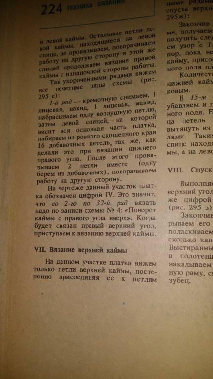 Синий Чулочек, я сегодня озадачилась вязанием настоящих оренбургских платков. Так там вяжется сначала нижняя кайма с угла, затем тело с паралельной каймой с двух сторон и завершается кацмой же без единого шва. Именно так вязали наши соседки-башкирки. Нашла у себя в книгах более-менее подробное описание. Сейчас довяжу свитер и примусь за платок.