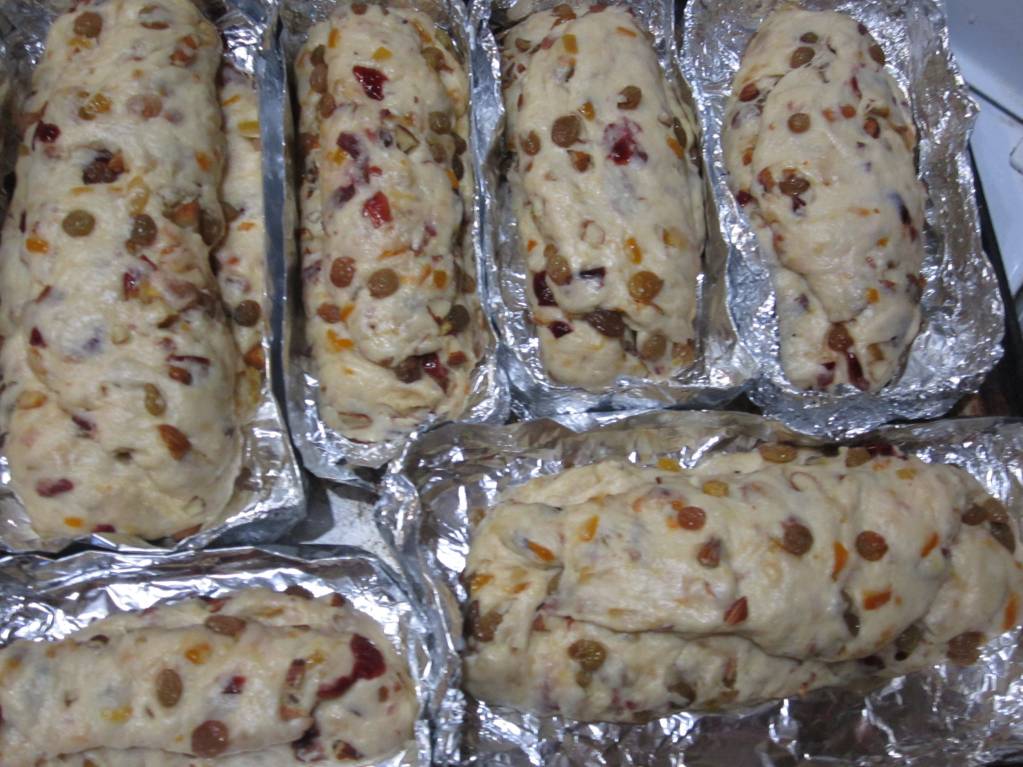 В этом году я очень довольна штоленами, получились отлично. Хорошо подошла опара (в прошлом году она была у меня тяжелая и густая) и вместо запланированных 6 получилось 8 штоленов