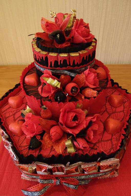 Дюймовочка, свит-дизайн - это все из конфет, но тортик давал больший размах, чем букет. Например, вот