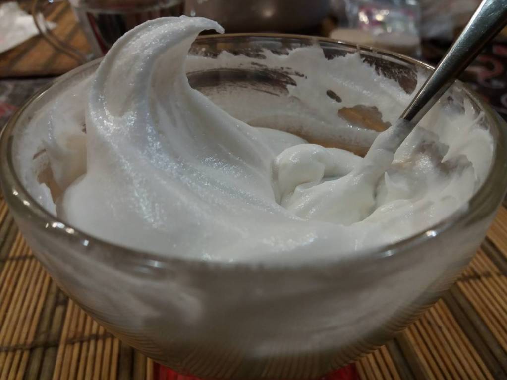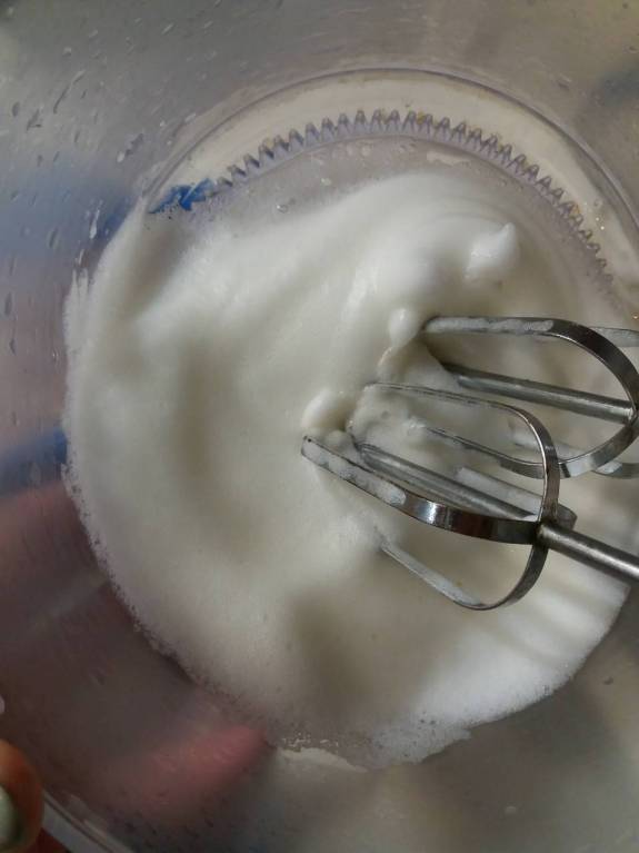 В данном случае я не взвешиваю ни белок, ни пудру, а взбиваю до нужной мне консистенции, так сказать "грустный" пик
