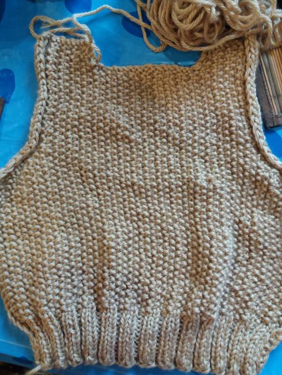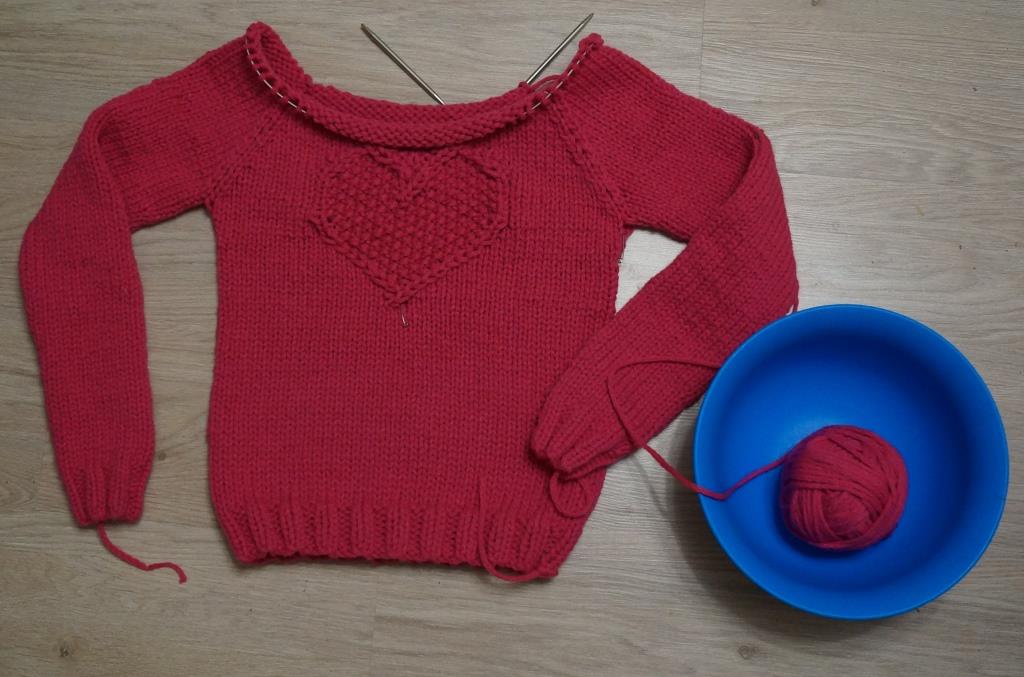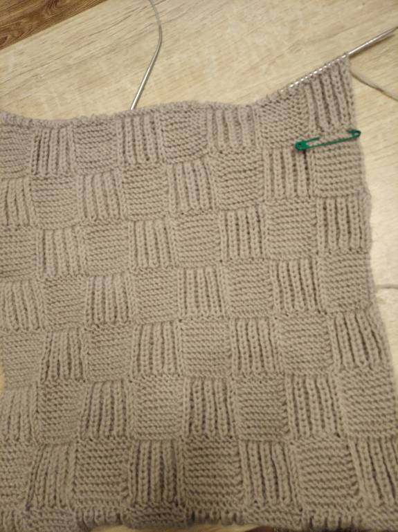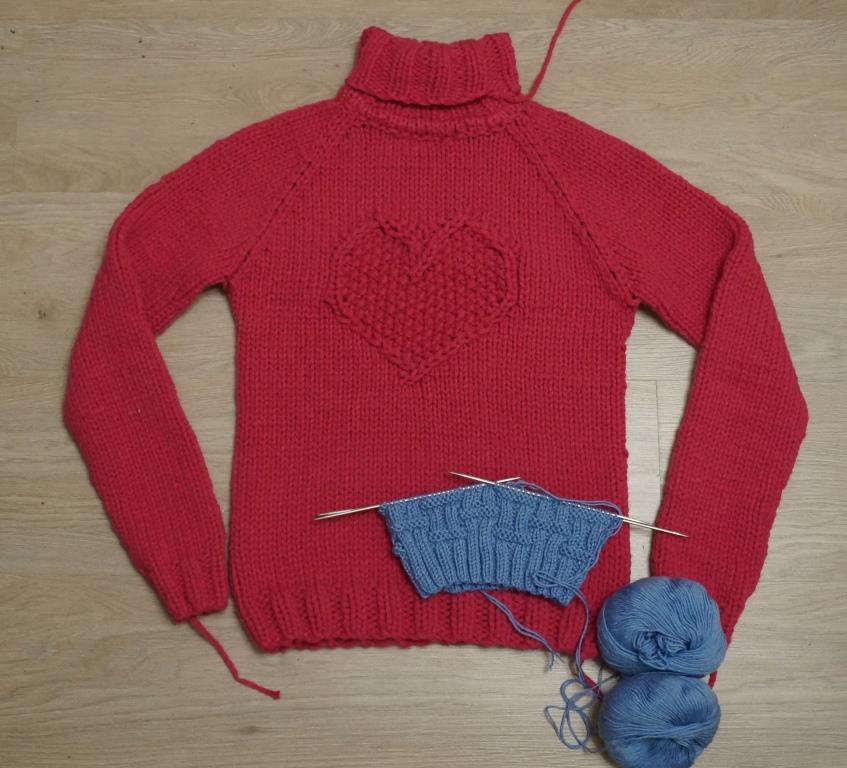 Свитер довязан, осталось заправить нити и провести ВТО. Начата шапочка для первоклассника. Итого 4676 петель.