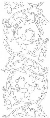 Domnika, верхний узор можно вышить обычной плоской гладью, или гладью вприкреп. А вот нижний вариант может быть вышит сочетанием плоской и теневой глади ( фрагменты цветка) и стебельчатого шва( там, где в орнаменте тонкие стебли). А вообще, верхний узор больше подходит для золотого шитья, а вот с нижним можно поэкспериментировать