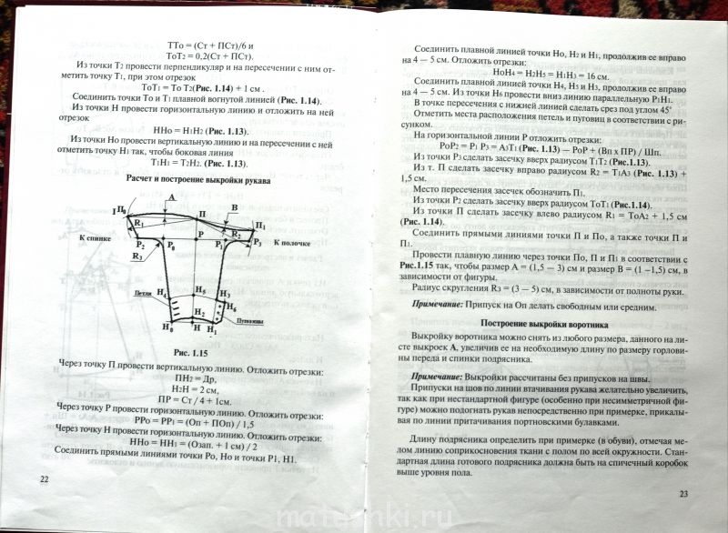Девочки, выкладываю построение выкройки, которое взяла за основу. Построение спинки и рукава не меняется, а при построении полочки, запах (влево от линии АН) не строила. Вместо него строила планку шириной 6 см (это с припуском). Воротник делала, как обычную стойку, высота 4 см. Мешковину карманов кроила по старому мужниному подряснику, поэтому построения нет. Припуски лучше брать на среднее и свободное прилегание.
