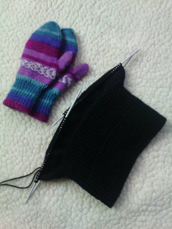 13192 петли. Связаны варежки, а сейчас у меня рутина - шапка сыну. Серафим серьезный парень, сразу расставил приоритеты: никаких узоров, цвет только черный, резинка 1*1 двойная. И точка.