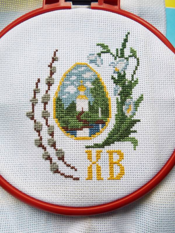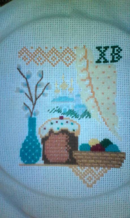 На этот этап ( 27.03.17) у меня 600 крестиков. Начала вышивать другую половинку схемы.