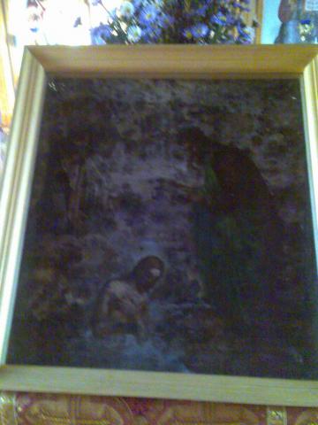 Нам в храм года четыре назад отдали черную икону, на которой не понятно что было изображено. Прошло 2 года. Отец ее достал, снял с доски холст, который был прибит гвоздями. А на нем с трудом разглядел Крещение Господне, а с обратной стороны холста была Богородица. Заказали для нее двустороннюю рамку, поместили туда, повесили в храме. Год назад икона стала светлеть , проявляться прихожани сами заметили это.