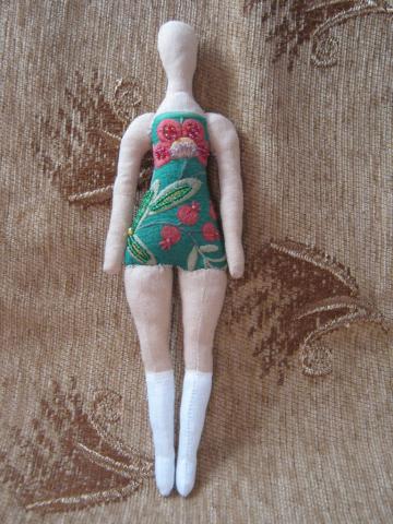 Определяем необходимую длину платья. В классической Тильде платье пришивается под грудью, но я пришивала на бедрах. Так что вы можете шить там, где нравится. Только не советую на талии - так как нет груди, будет смотреться плохо.