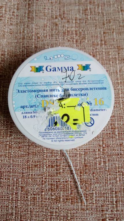 Я беру эту спандексовую нитку, вставляют в иголку завязываю узелок и прошиваю поперёк резинки в 2-3 местах