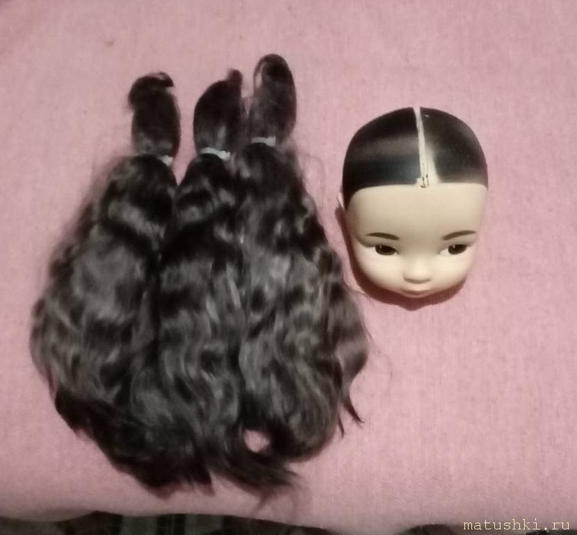 Вот, кстати, будущие волосы. Мягонькие, блестящие, ароматные. Купила я их, как сейчас вижу, с большим запасом. Но, может быть, у меня когда-нибудь поселится ещё какая-то темноволосая куколка