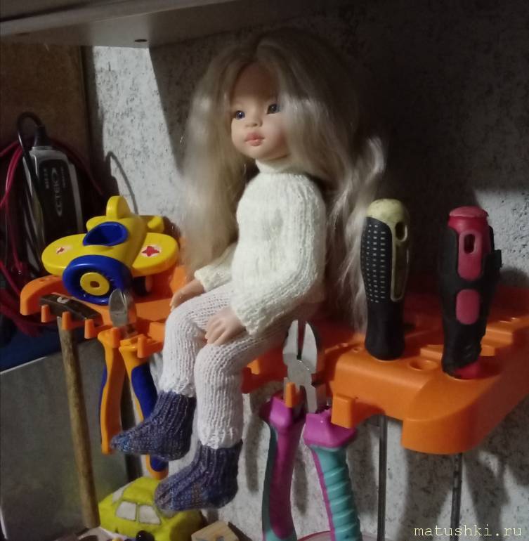 Поскольку пошив ботиночек у меня немного стал на месте (надо колодки заказать), то пока связала носочки. А то голые ноги зимой, пусть и кукольные, меня очень тревожат