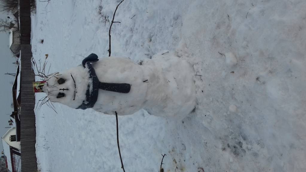 .А сегодня потеплело, слякоти правда нет(0 температура).С завтрашнего дня потепление, так мы с детьми сегодня решили снеговика слепить на последок.