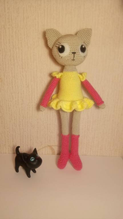 Куколку сегодня закончила, а кошечку и собачку вязала еще беременная. Уже они уехали от нас.