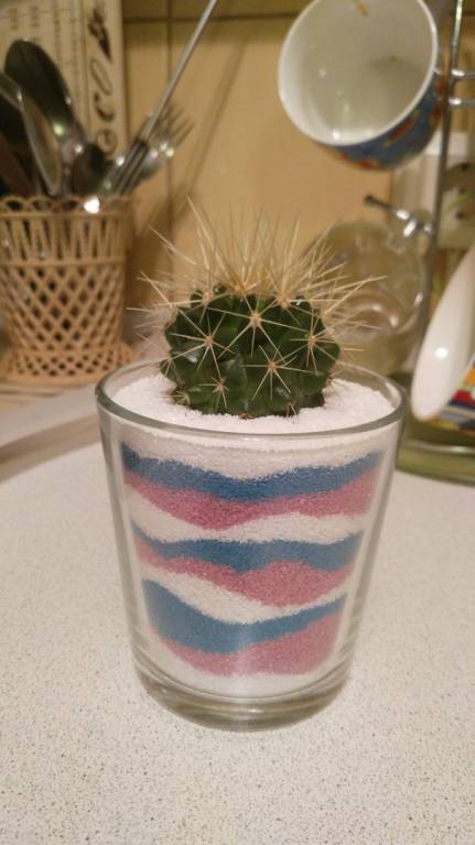 Моё новое увлечение, что то последнее время меня потянуло на кактусы и суккуленты. Кактус в цветном песке.