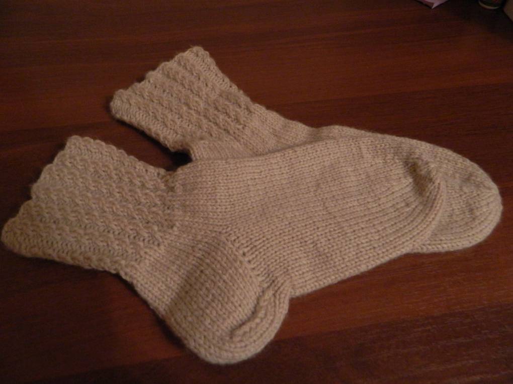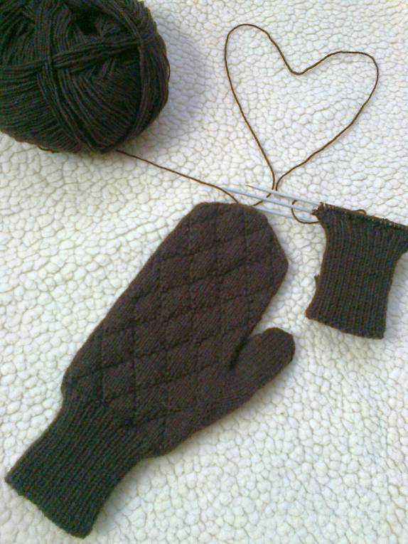 Всё как-то слишком просто: обычная шапка сыну и пока одна рукавица мужу, который ежедневно ездит петь в храм на другой конец города общественным транспортом. Без претензии на гламур, но очень теплые.