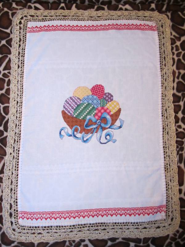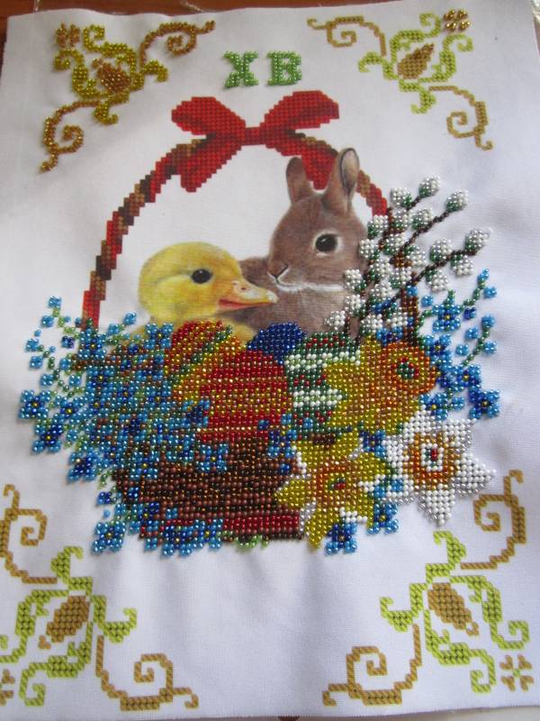 20.03. Мой долгосторой. В позапрошлом году была вышита красная окантовка, в прошлом вышила корзину с яйцами и обвязала, в этом наконец-то закончила. Рамочка, веточки вербы и буквы: 2 300 крестиков(округлила в меньшую сторону) 27.03 Закончила салфетку бисером 1 385 бисеринок 03.04 Еще одна салфетка начатая в прошлом году 2 300 крестиков (округлила в меньшую сторону) Отправлено спустя 11 минут 58 секунд: