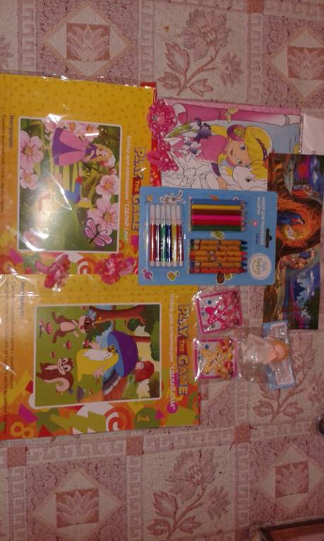 девчонкам моим заколочки,резиночки,карандаши+фломастеры+раскраска+аппликация