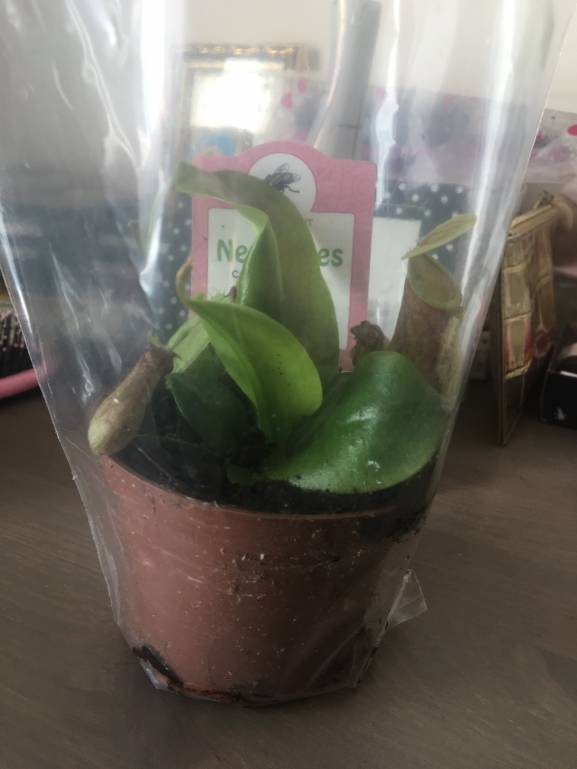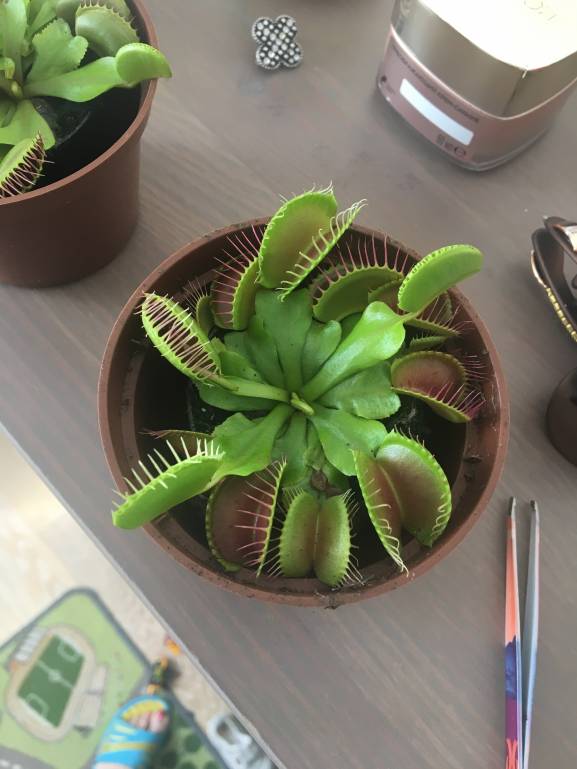 , больше с целью отправки наконец-то в Грузию, чем для дома, там для них климат лучше - тёплый и влажный, именно то, что надо. Попробовала покормить мухоловку молью - кое-как одна ловушка закрылась и открылась спустя некоторое время обратно, видимо, маленькие ещё, не проголодались:). Тот, что с кувшинчиками, называется непентес.
