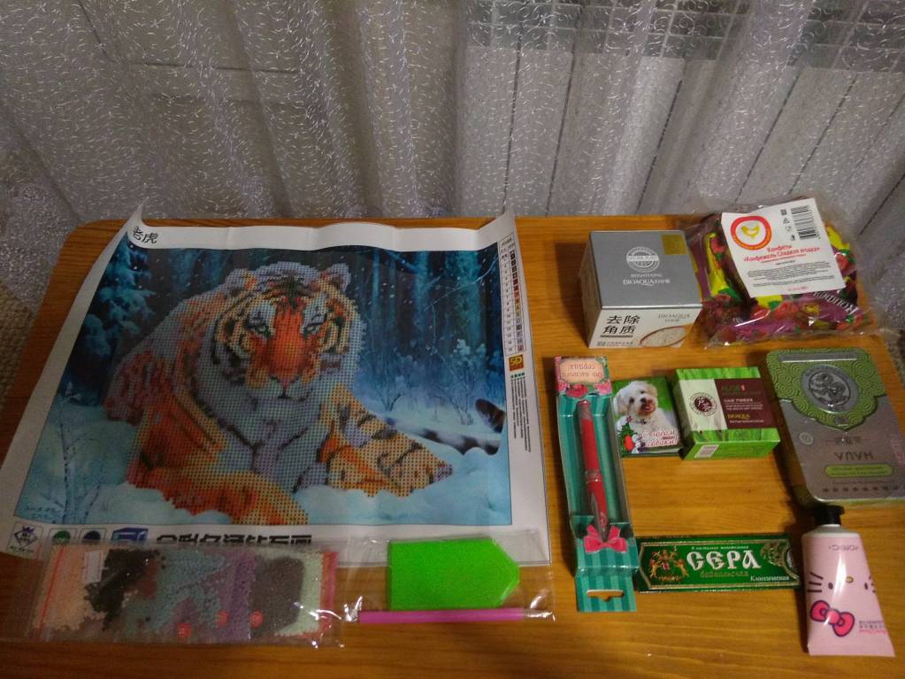 Итак, в этом волшебном носочке были набор мозаичной вышивки с красивым сильным смелым таежным тигром