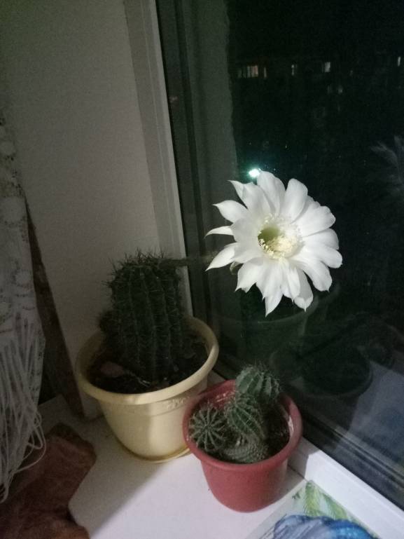 Я ждала этого почти десять лет. Он падал и ломался, я обижалась на него и оставляла жить своей жизнь, потом жалела и снова поливала, ухаживала и ждала. И мой труд и терпение были вознаграждены прекрасным, тонко пахнущим нарциссом, прекрасным, но не долговечным цветением кактуса.