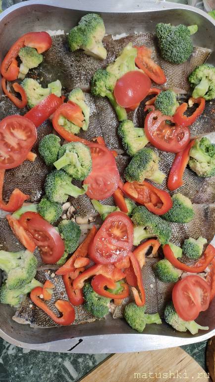 Позволяю себе изредка рыбу,пришла со стажировки и давай готовить, рыбу приводила, специями присыпала и оставила,сварила рис до полуготовности,выложила его на противень,сверху замороженные шампиньоны,сверху рыбу,перец болгарский, брокколи.