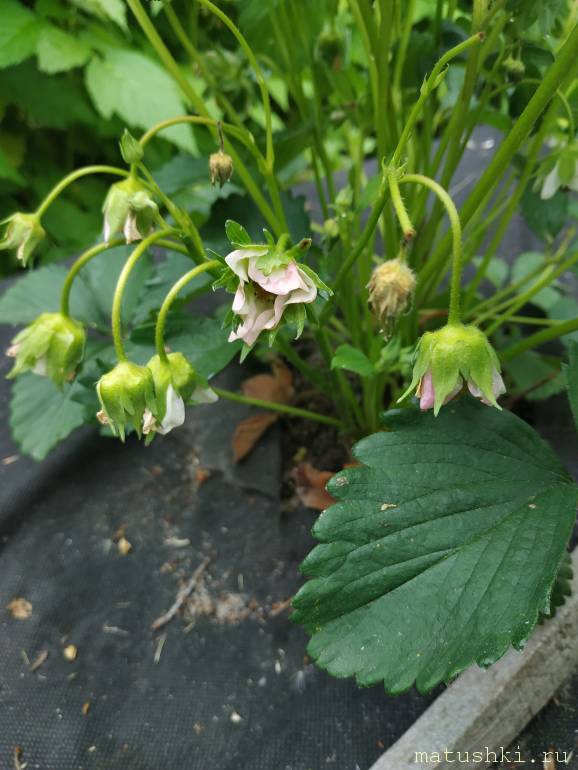 У меня на нескольких кустах клубники почему-то розовые цветочки появились