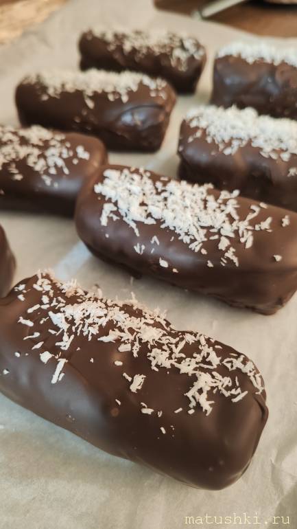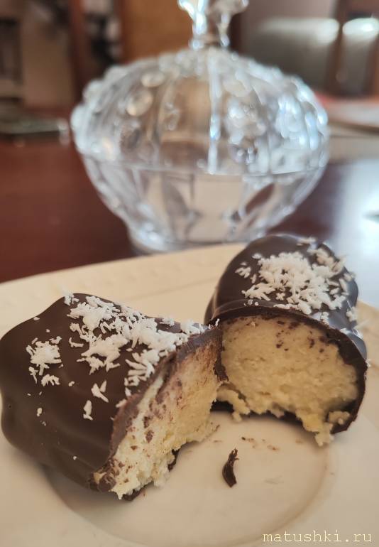 ) (взбить блендером: отвареное пшено, сахар(у меня заменитель), кокосовые: молоко, стружка, масло, ваниль. Шоколад (у меня без сахара)для глазури.