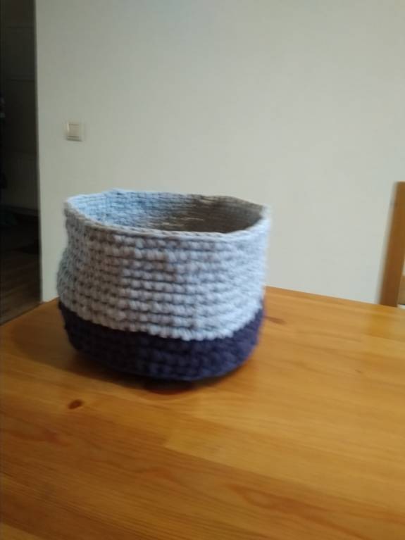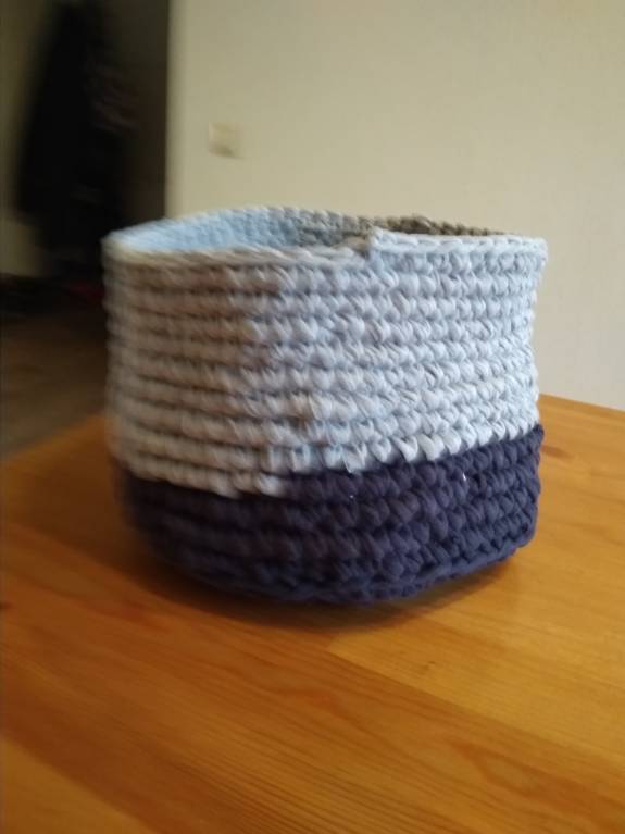 Мой первый опыт вязания корзинки крючком из самодельной ленточной пряжи