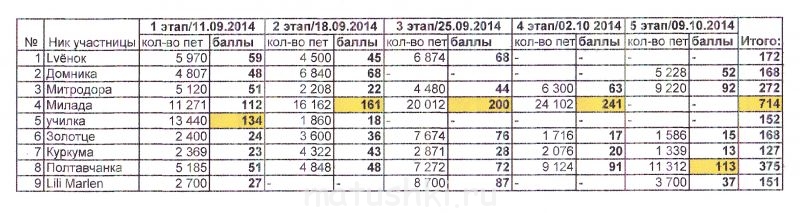 Забыла что сегодня отчитываться, все посчитаю вечером напишу.
