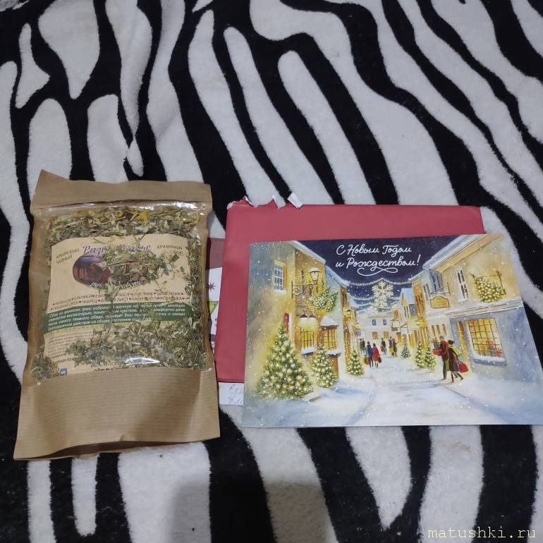 ), смесь трав для чая, письмо и открытка с душевными словами поздравления. Ооочень приятно