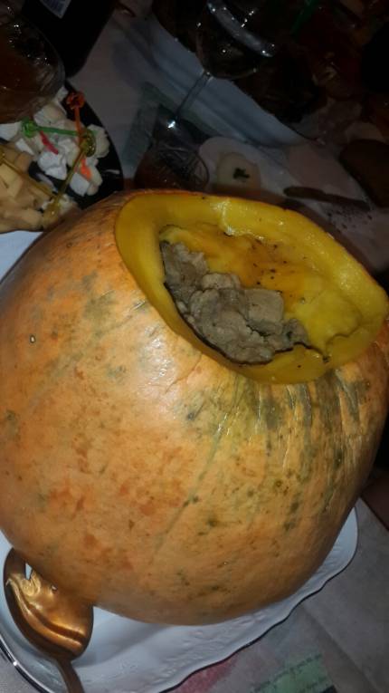 На День Рождения дочери приготовили тыкву целиком вот по этому рецепту http://рецепт-в-духовке.рф/vtoryie-blyuda-v-duhovke/zharkoe-v-tyikve.html