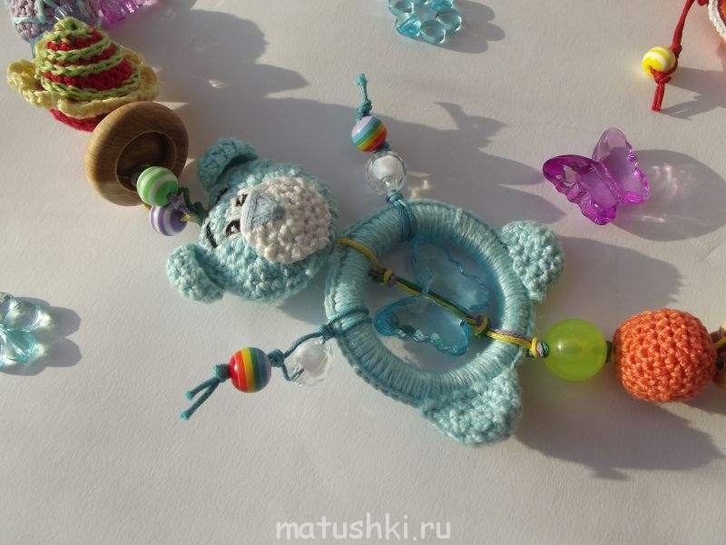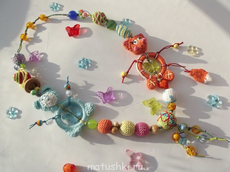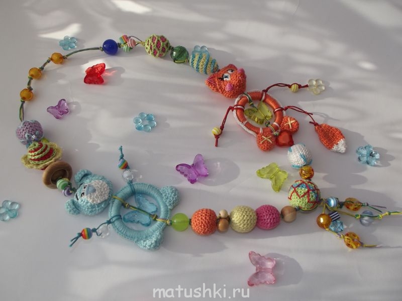 Бусинки цветочки,очень заинтересуют шаловливые пальчики малыша.