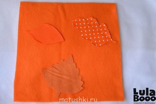 2. Оранжевый. Из разных тканей разных оттенков и фактур вырезаем разные листики – пришиваем.