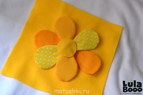 Раскладываем как нравится, в серединку флисовый кружок, пришиваем только его. Лепестки можно отгибать и они шуршат.