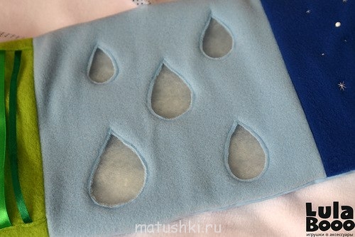Под них кладем канцелярскую папочку, аккуратно все это скрепляем булавками (папка скользкая, может елозить), прошиваем на машинке по периметру капель.