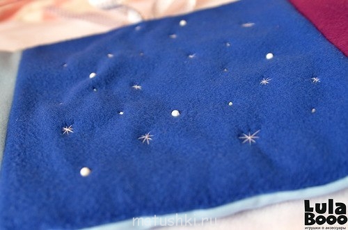 Под неё парочку слоев сетки, и еще один слой фиолетового флиса. Я засунула внутрь бусинку, чтобы её можно было трогать маленькими пальчиками.