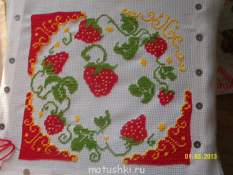 Ula_la, я стираю в холодной воде обычным мылом. Можно стирать и в теплой, но температура должна быть такой, чтобы не полиняли нитки. В моей практике линяло только Кировское мулине, за ДМС, Гаммой, Мадейрой такого не замечала. Слегка отжимаю и высушиваю утюгом с изнаночной стороны через проутюжильник (в моем случае кусок белого ситца)