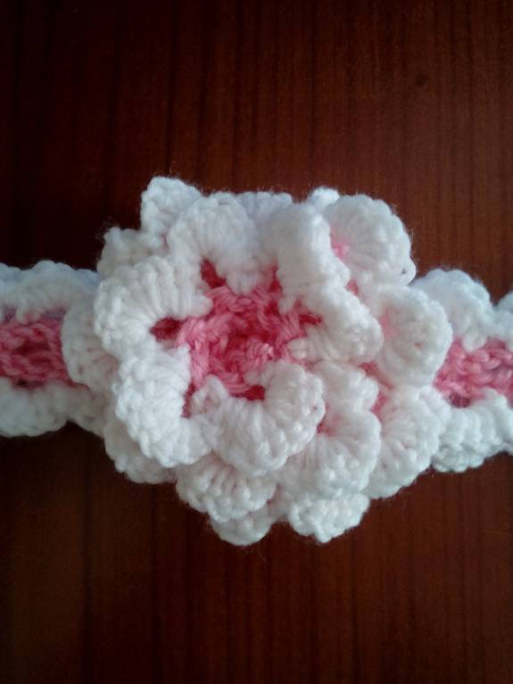 Немного учусь дальше вязать. Очередная работа- повязка на голову маленькой моднице. Только моя модница нелюбль что либо носить на голове. Может выростит и будет носить.