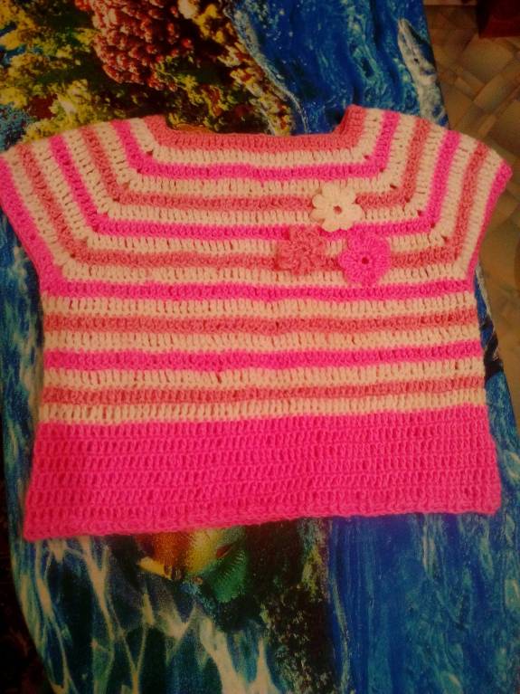 Вязала я кофту, замучилась, решила оставить безрукавку. Тем более нитки белые у меня закончились