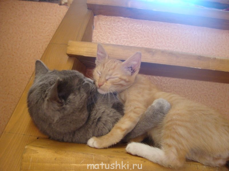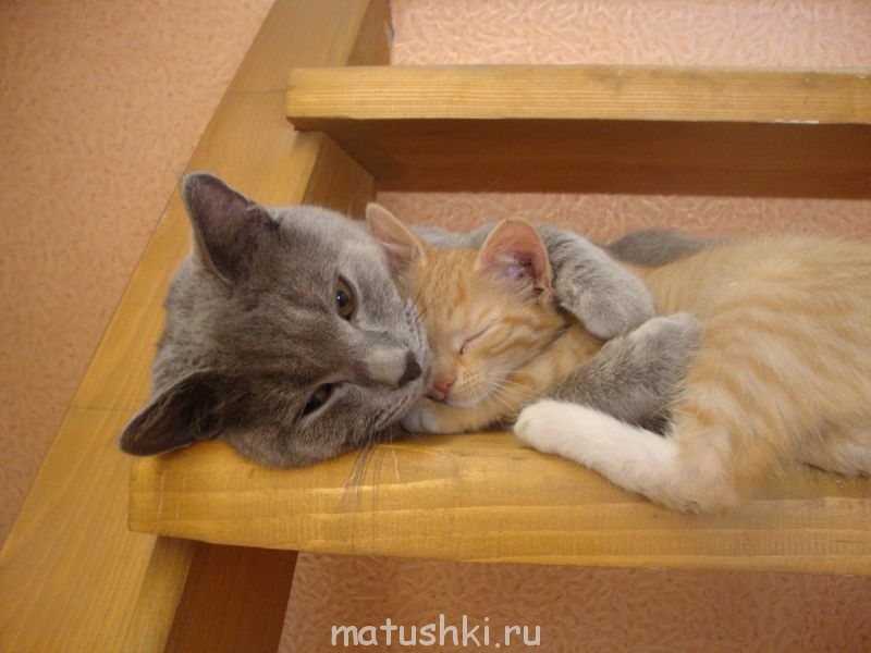 Наш ленивый Филимон на деле оказался нежной матерью - моет мелкого несколько раз в день очень тщательно, спать ложится с ним рядом, если мелкий затерялся - ходит зовет, мурлычит так вопросительно