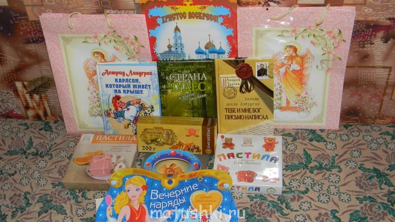 Подарки - замечательные! Я в восторге до сих пор! Книжки еще не читаю, пастилу тоже бережем до Пасхи...