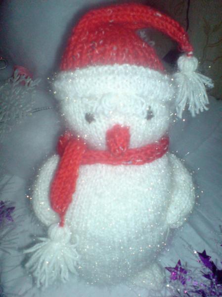 решила попробывать свяать снеговика ,вот что получилась.