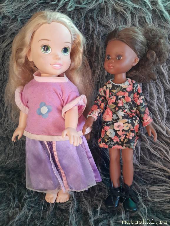 Пенелопа, у меня две малышки 15 сантимеровые(шарнирные), ну у них хоть по платьишку есть) и совсем раздетая девочка мулатка роста и фигуры как Паола Рейна кукла.