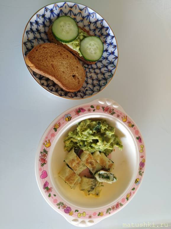 Ячменный напиток с молоком+омлет+ паста из авокадо+сухарик.