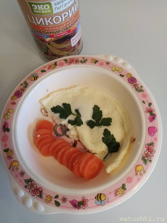 Омлет+отварная морковь с оливковым маслом.