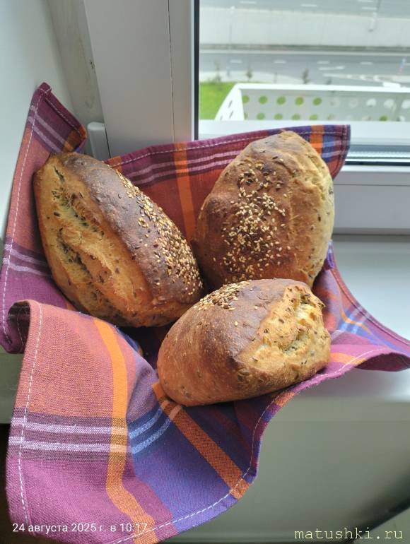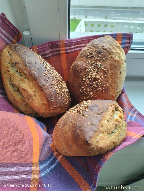 У меня сегодня эксперимент. На базе своего рабочего рецепта приготовила зерновой пшеничный с добавлением ржаной муки и семян льна в тесто. С виду порадовал, как остынет, оценим вкус.