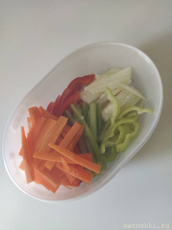 Перекусы для дочери. В одном контейнере варёные овощи, в другом - сырые.