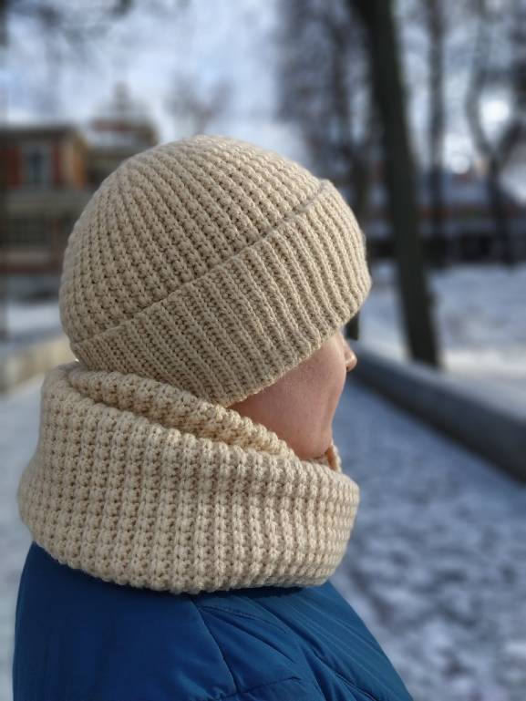 Осенью проснулся интерес к вязанию крючком, связала 2 шапки и снуд по МК Светланы Кочкиной: